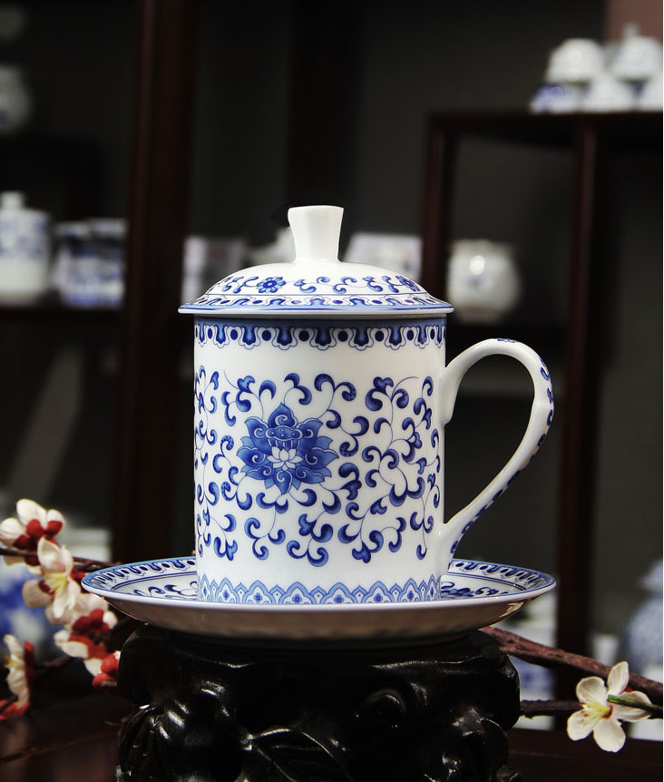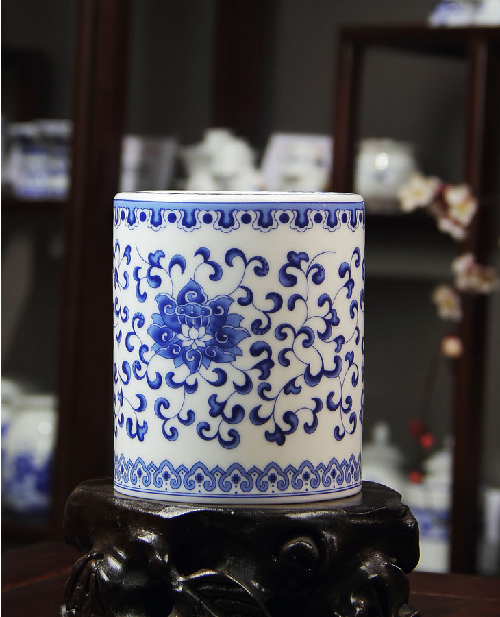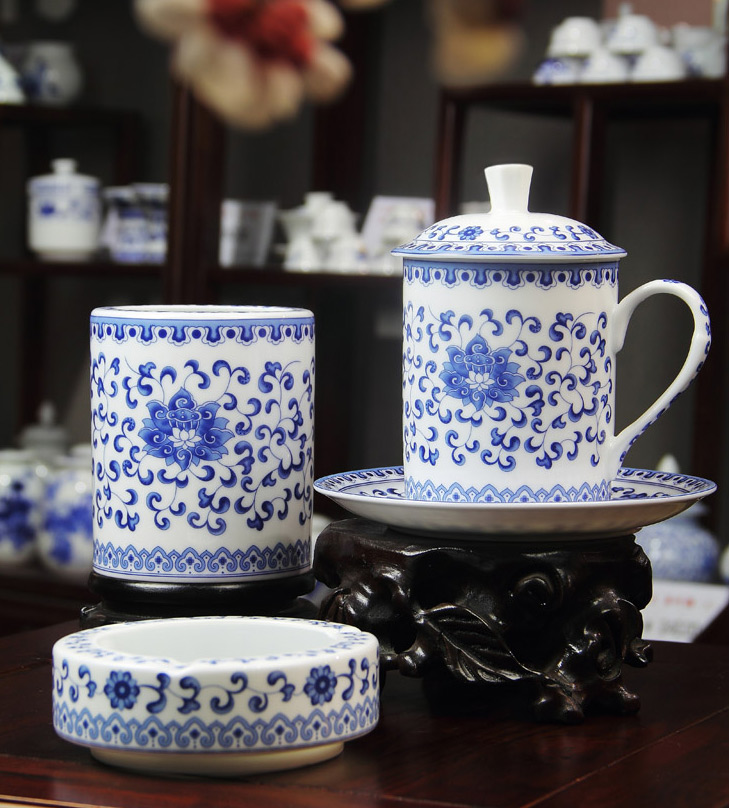 4頭辦公文具青花滿蓮