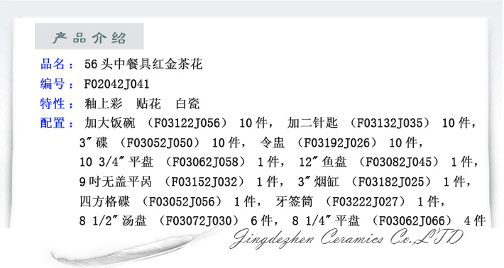 56頭中餐具紅金茶花
