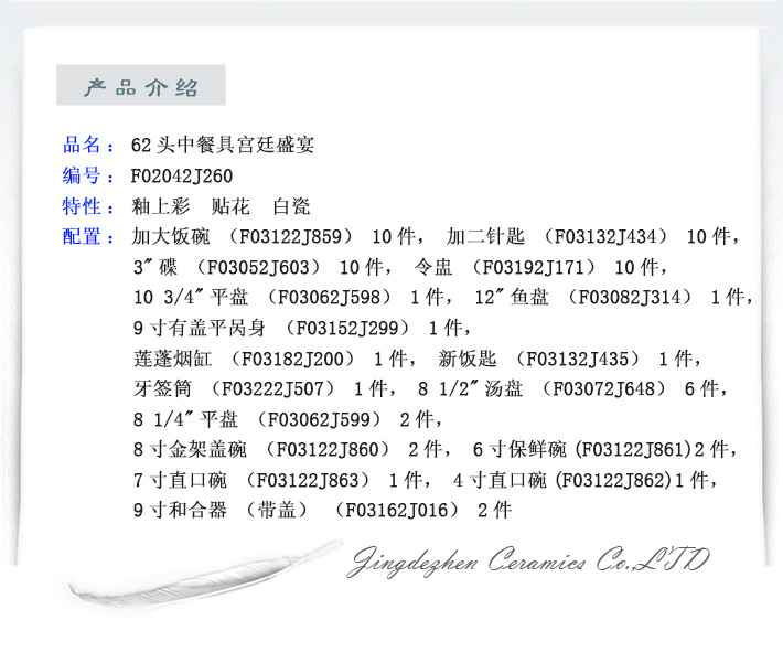 62頭中餐具宮廷盛宴